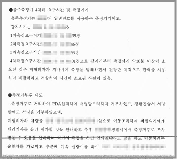 그때라도 음주측정에 응했어야 하지만, 공무원으로서 신분상의 불이익을 염려한 의뢰인은 음주측정기에 일부러 호흡을 약하게 불어넣는 방법으로 경찰공무원의 음주측정 요구에 불응하고 말았습니다.