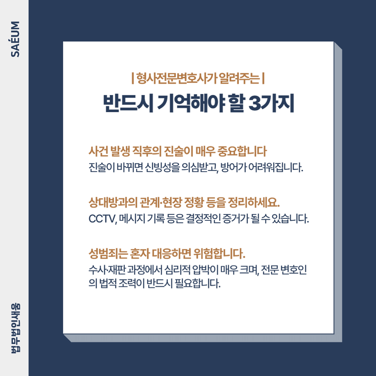 ➤ 수사·재판 과정에서 심리적 압박이 매우 크며, 전문 변호인의 법적 조력이 반드시 필요합니다.
