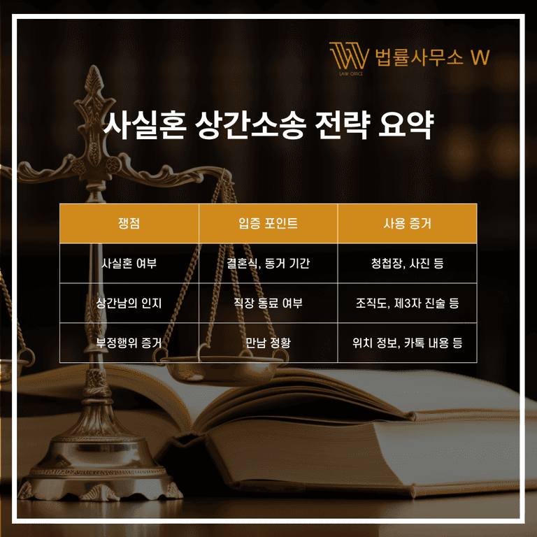 사실혼 관계를 상간남이 인지하고 있었다는 주장을 설득력 있게 구성했습니다.