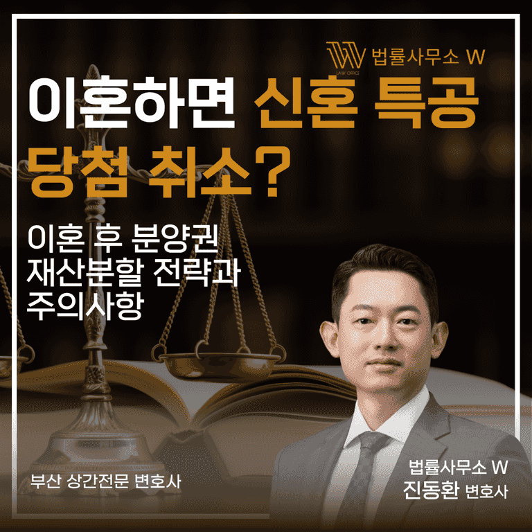 실제 신혼 특공에 당첨된 이후, 이혼을 고려하거나 진행 중인 분들이 종종 저희 법률사무소를 찾습니다. 아래에서 신혼 특공 당첨 유지 여부부터 분양권 재산분할, 명의 변경 방법까지 꼭 알아야 할 핵심 내용을 정리해드리겠습니다.