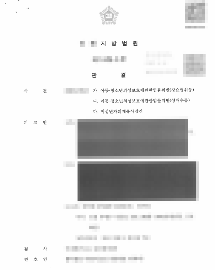 오늘은 미성년자의제강간, 성매매, 강요행위 혐의로 절 찾아온 의뢰인에게 수사 단계부터 재판까지 모든 절차에 참여해 집행유예를 받아드린 사례를 소개해 드리려고 합니다.
