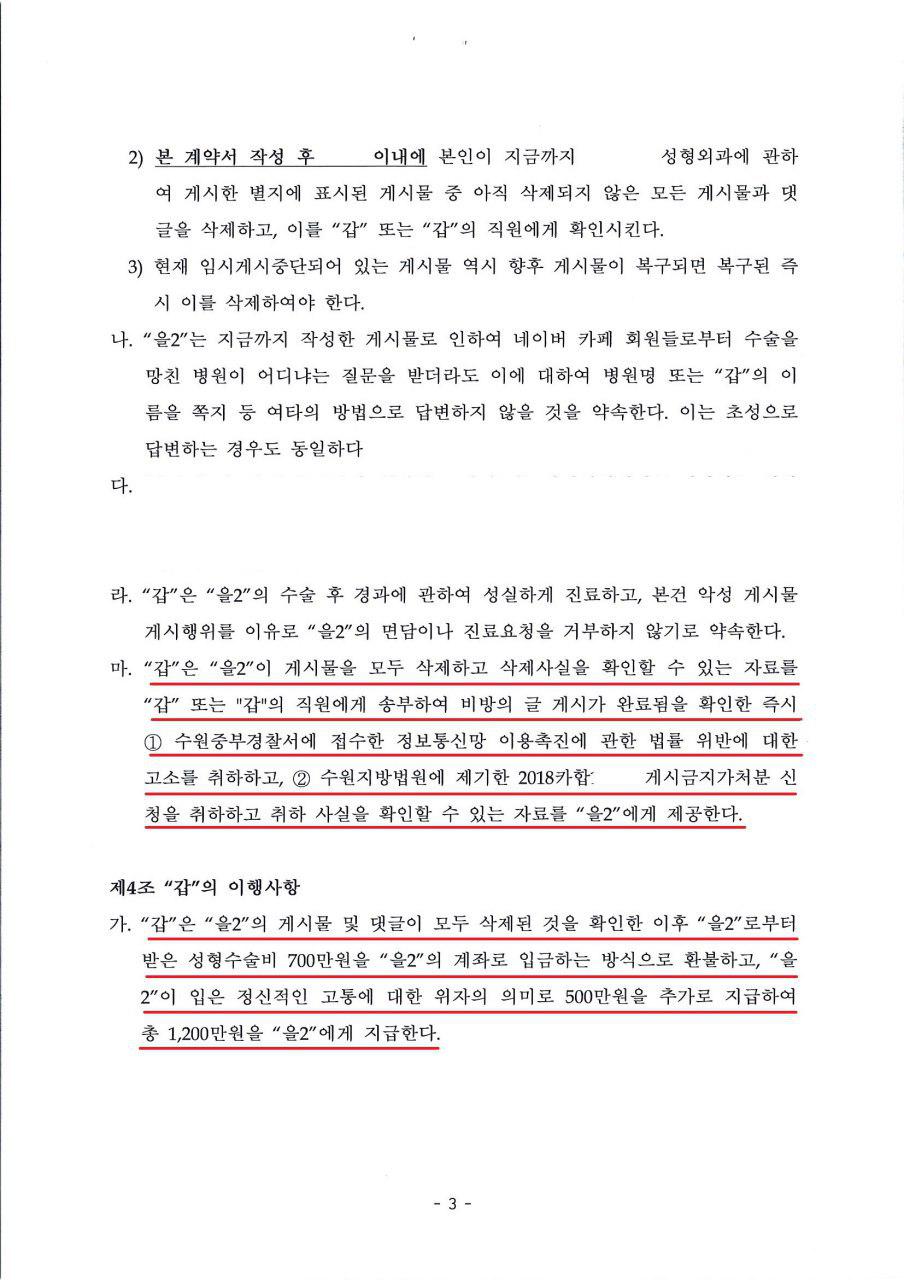 3. 성형외과 의사가 오히려 합의금 1200만원을 지급하였습니다.