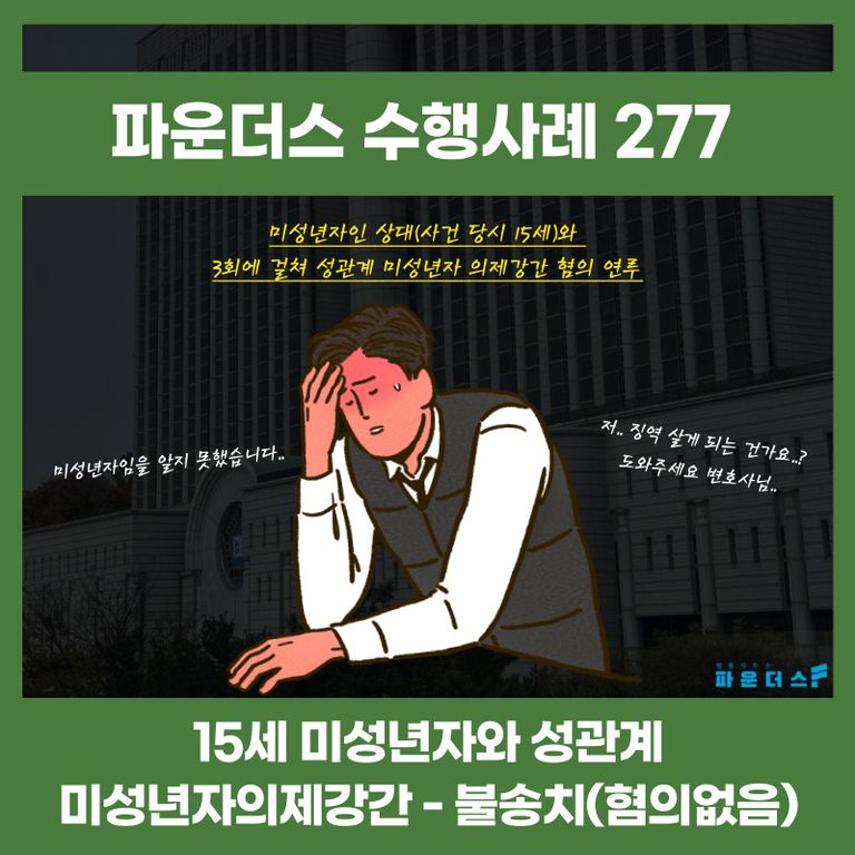 사건의 핵심 키워드: 미성년자의제강간 / 15세 미성년자 성관계 / 미성년자임을 인지 못한 성사건 의제강간 무혐의 대응.