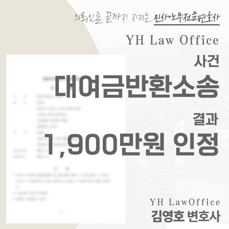 오늘 말씀드릴 사례의 의뢰인 역시, 오랜 지인의 요청으로 1,900만 원이라는 큰 금액을 빌려줬다가 오랜 시간 고통을 겪은 끝에, 대여금반환소송을 통해 전액 회수에 성공하게 됩니다.