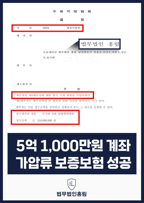 그 결과 법원에서는 본 변호인의 주장을 받아들여 통장 가압류(전액 보증보험)하였습니다.