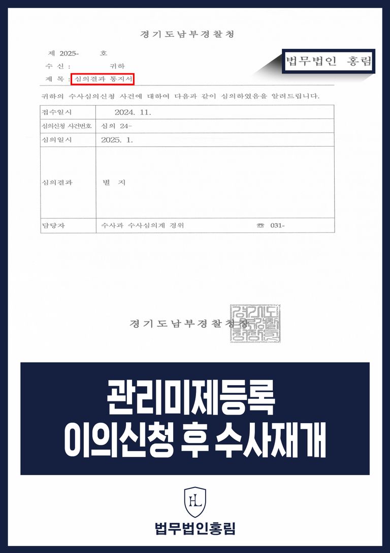이에 법무법인 홍림은 추가자료를 보강하여 수사기관에 이의제기 하였습니다.