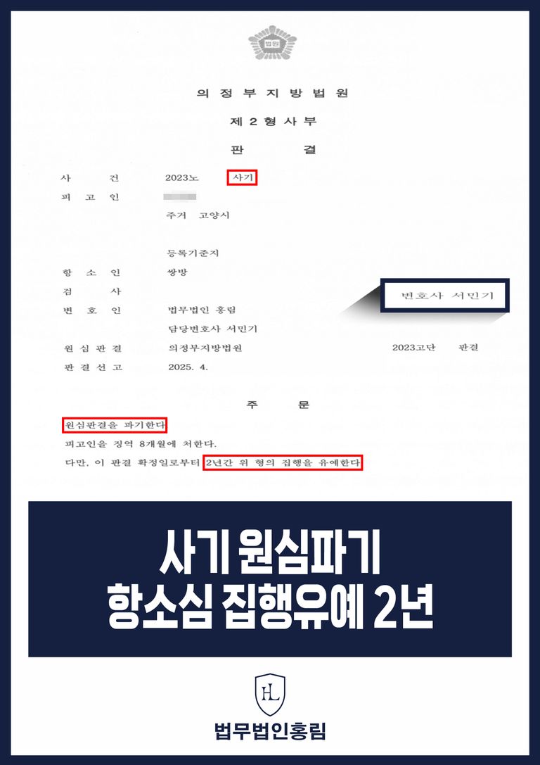 이에 의뢰인은 즉시 항소심을 제기하며, 1심 판결을 뒤집기 위해 의뢰인은 본 법무법인 홍림에 찾아오셨습니다. 사건을 검토한 본 법무법인 홍림의 변호인 사기 원심파기 항소심 집행유예 결과를 목표로 전략적인 항소심 방어에 착수하였습니다.