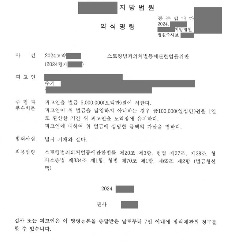 이 사건은 스토킹처벌법 위반으로 다수 혐의가 적용된 사건에서,