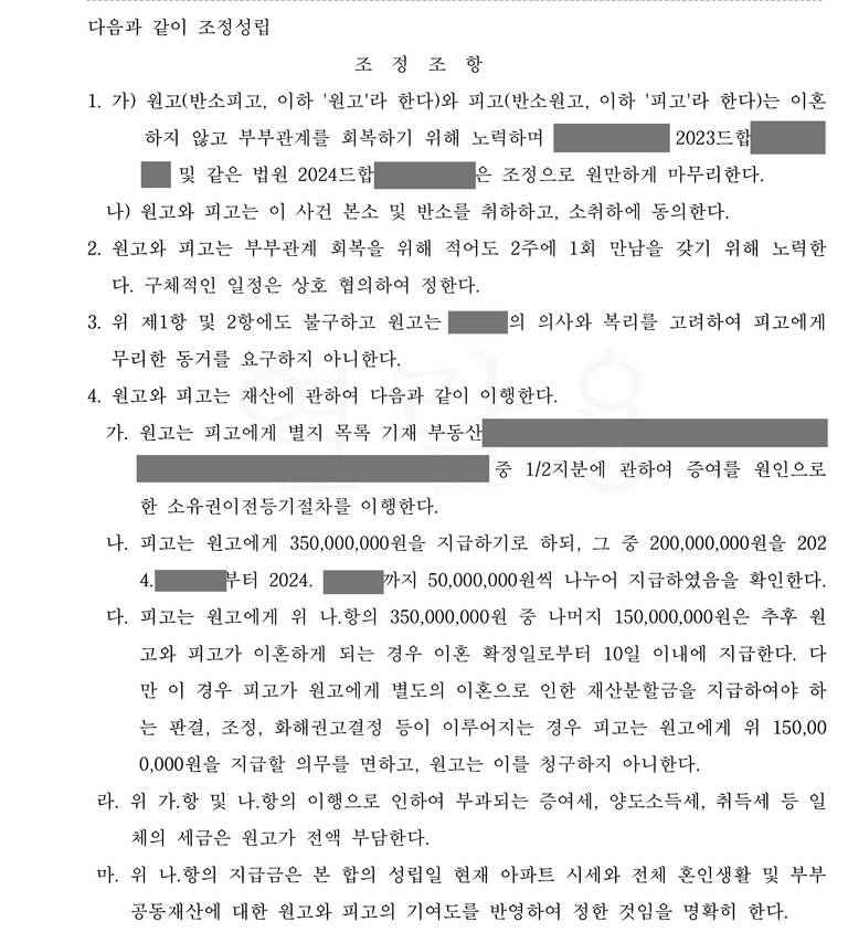 📌 재산분할과 부동산 지분 이전, 금전 지급은 조정 내에서 명확히 합의 가능