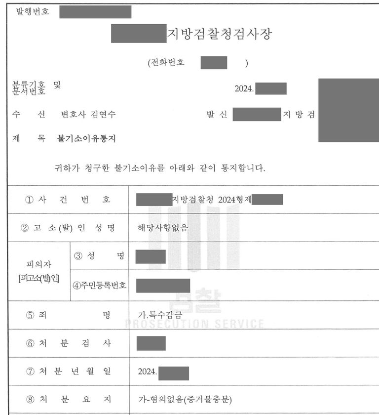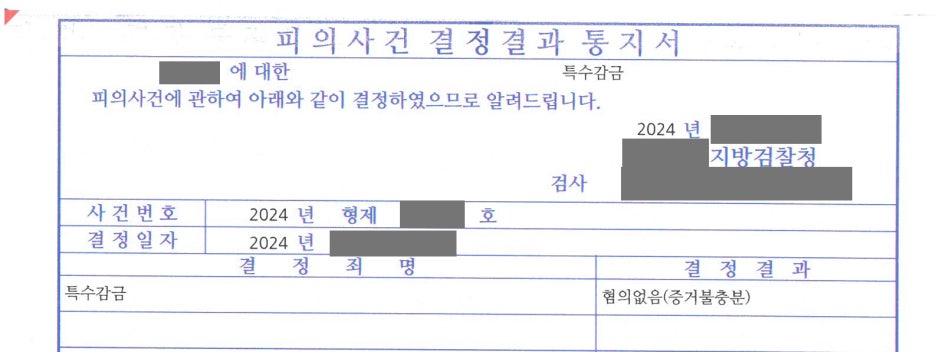 👉 최종적으로 '증거불충분'에 따른 불기소(혐의없음) 처분 결정