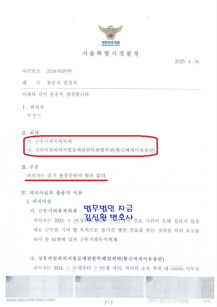 ○ 경찰청 결정 : 혐의없음 불송치 결정