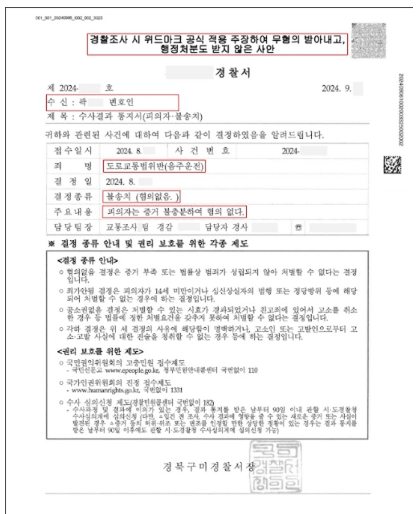 그로인해 도로교통법위반(음주운전)으로 당소를 찾아 왔죠.