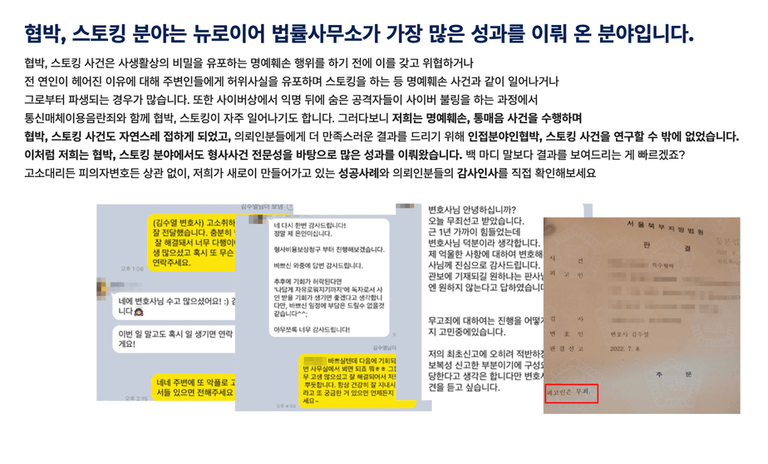 실력 있는 조력자와 제대로 된 상담 1번만 받아봐도 억울하게 스토킹 범죄자로 전락하는 상황은 마주하지 않으실 거라 생각합니다.