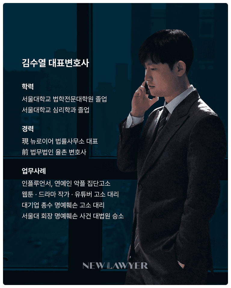 안녕하십니까? 뉴로이어 법률사무소의 김수열 대표 변호사입니다.