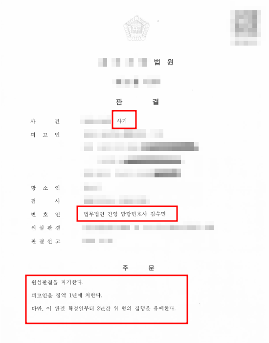 오늘은 사기죄로 1심에서 실형을 받고 항소하여 결국은 집행유예를 받아낸 사건을 소개해 드리겠습니다.