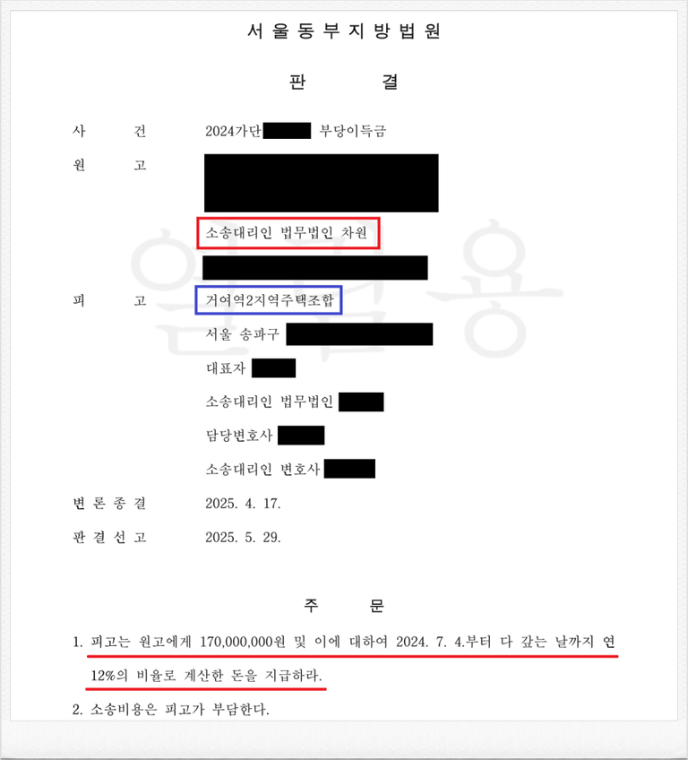 결국 재판부는 이러한 저의 주장을 받아들여, 피고가 의뢰인에게 170,000,000원 및 이에 대한 지연손해금을 지급하라는 내용의 판결을 선고하였습니다.