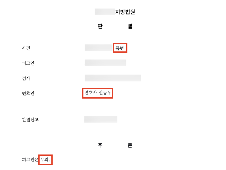 다행히 CCTV에는 피고인의 손이 피해자의 몸에 닿지도 않았고, 잡아당기는 장면도 없었습니다. 손은 금세 떨어졌고, 피해자 역시 놀라는 모습 없이 몸을 살짝 돌렸을 뿐이었습니다. 법원은 이러한 정황을 면밀히 검토한 끝에, 피고인의 손짓이 신체에 대한 불법적 유형력 행사로 보긴 어렵다고 판단했습니다. 무죄였습니다. 누군가의 말 한마디, 손동작 하나가 고의적 폭행으로 오해받을 수 있는 시대입니다. 무고의 위험성은 결코 남의 일이 아닙니다. 억울한 사람들을 위해, 저는 끝까지 싸우는 변호사로 남겠습니다.
