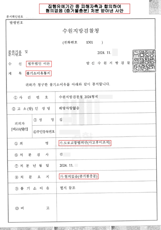 1️⃣ 당시 경미한 사고 였으며 피해자가 연락처를 교환하자고 하였던 점