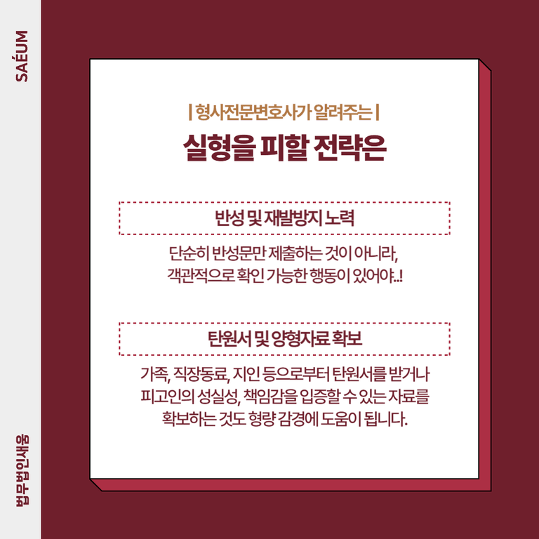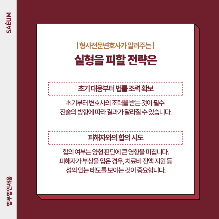 중요한 것은 ‘누가 조력하느냐’입니다. 형사사건 경험이 풍부한 전문 변호사는 사건의 핵심 쟁점을 정확히 파악하고, 법리적 구조와 현실적인 전략을 결합해 실형을 피할 수 있도록 돕습니다.