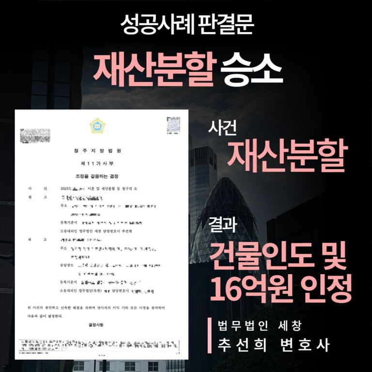이혼 소송과 재산분할, 건물 명의까지 분할받은 사례