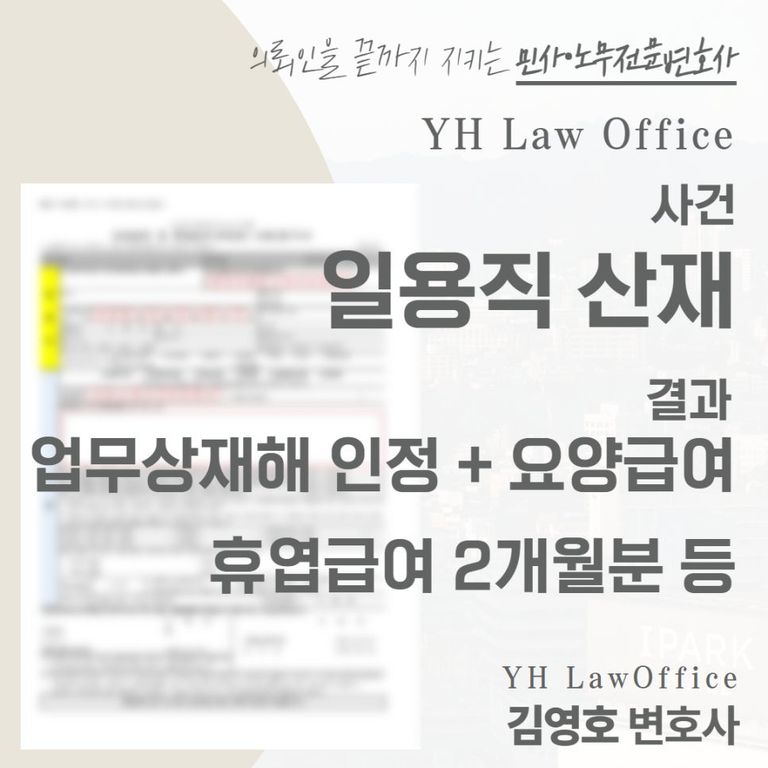 안녕하세요. YH 법률사무소, ‘산재 전문 김영호 변호사’입니다.