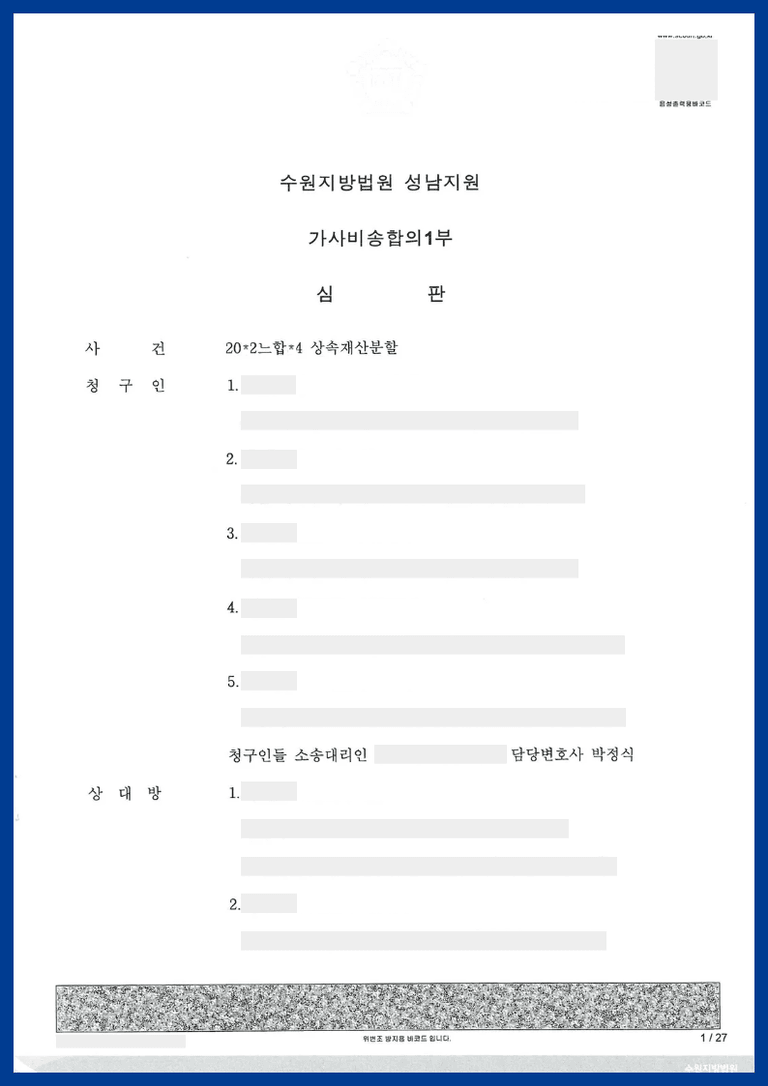 ④ 상대방들은 망인으로부터 특별수익을 받았음이 인정되고, 청구인은 특별수익이 없다면서, 이상을 바탕으로 망인의 상속재산인 각 채권을 분할한다고 판결하였습니다.