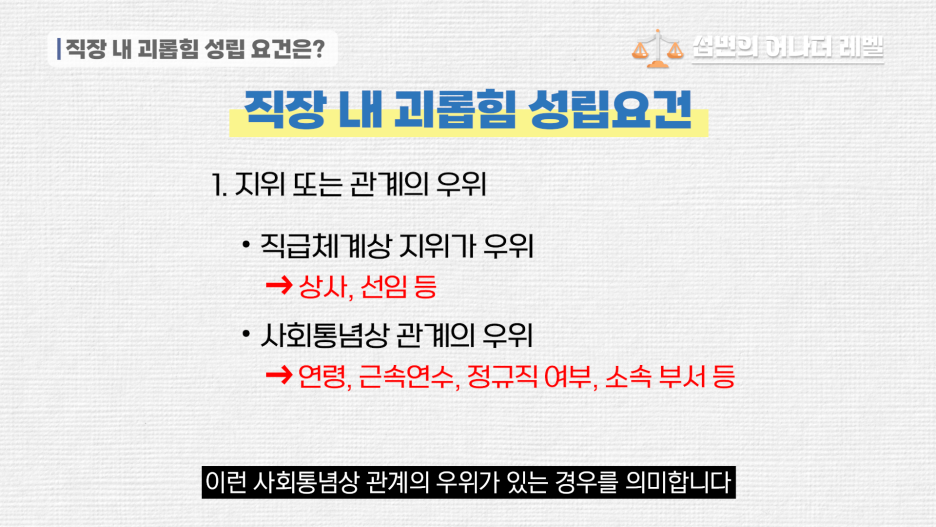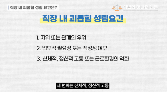 직장 내 괴롭힘의 3가지 성립 요건