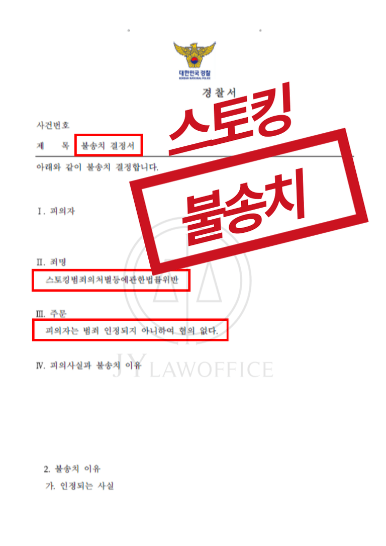 [형사전문변호사 성공사례] 스토킹 - 불송치
