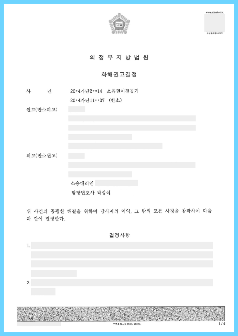 원고의 주위적청구인 유언무효청구는 이유없다고 보았고, 예비적 청구인 원고의 유류분청구 및 피고의 반소청구인 대여금청구 모두에 이유 있다는 판단을 하면서 이를 기초로 하여 화해권고결정을 내렸고, 원고의 유류분상당액 중 피고의 대여금상당분을 공제하고 남은 부분을 피고가 원고에게 지급하는 방식으로 당사자 간 원만하게 재판상 화해되었습니다.