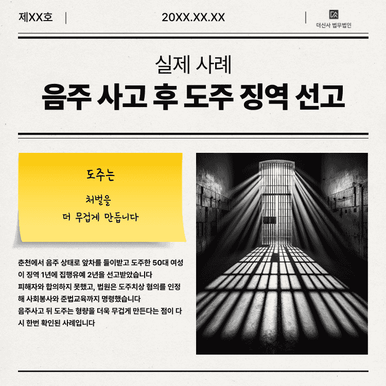초범이라도 음주운전 사고 후 도주는 실형 선고로 이어질 수 있는 중대 범죄입니다.