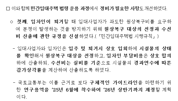 - 임차인 퇴거시 원상복구비용 산출 및 부담기준 마련 2025. 5. 28.
