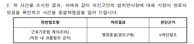 노동청, “직장 내 괴롭힘에 해당한다.”