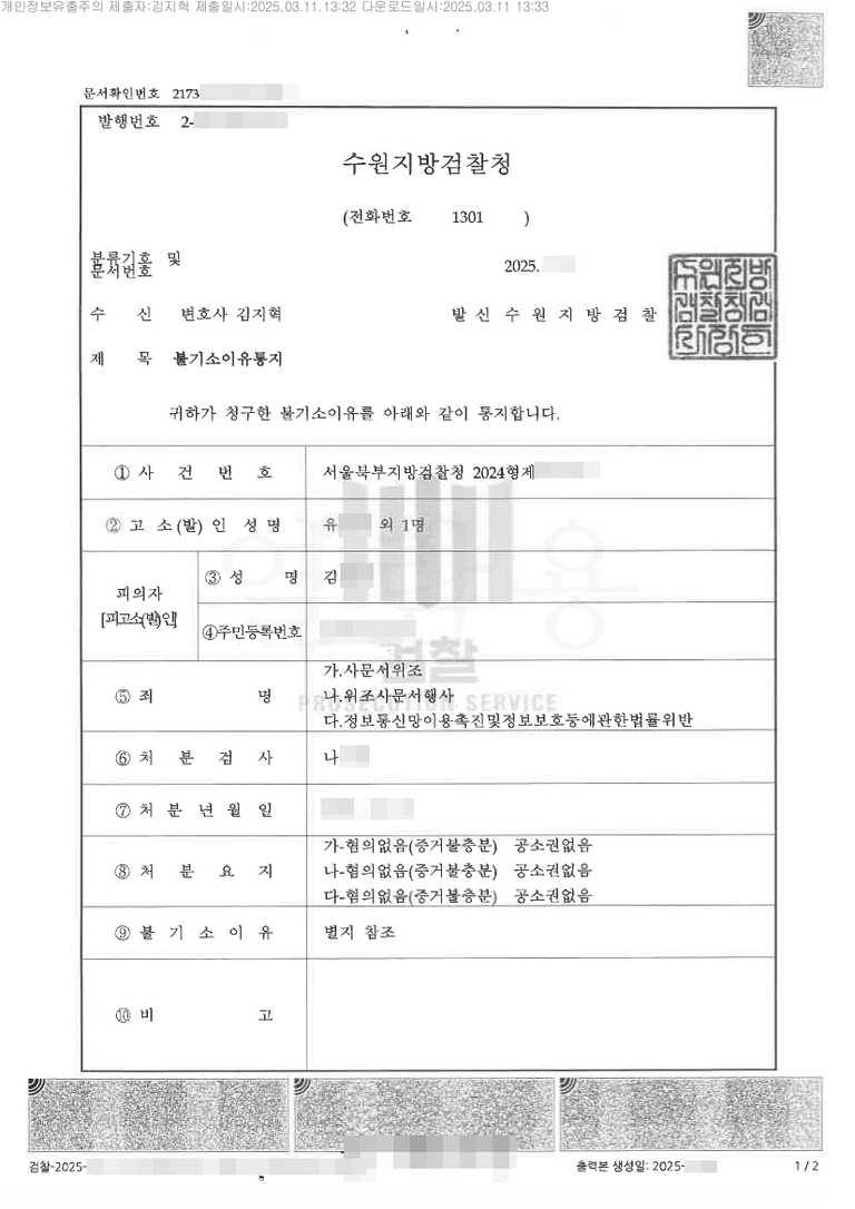 이에 수년간에 걸친 의뢰인과 고객의 거래, 대화, 이체내역 등을 면밀히 검토하였고, 의뢰인이 일방적으로 진행할 수 없다는 변론으로 수사기관을 설득하였고, 결국 서울북부지방검찰청으로부터 최종 무혐의처분을 받게 되었습니다.