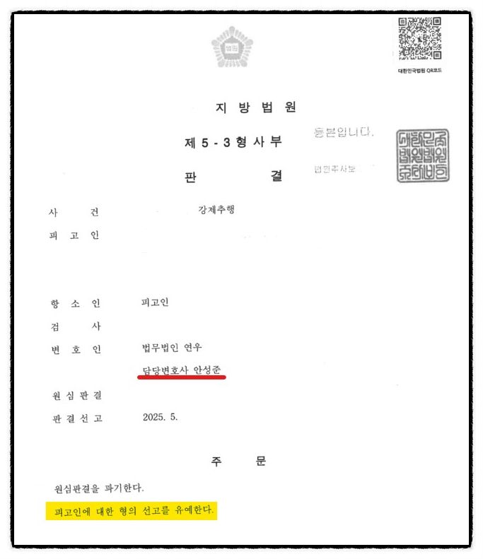 오늘은 위와 같이 의뢰인이 1심에서 벌금형을 선고받은 사건에 대해, 본 변호인이 2심을 맡아 적절한 법률적 대응과 더불어 의뢰인의 개별적 사정을 꼼꼼히 정리하여 법원에 호소한 결과 선고유예를 받게 된 사건을 소개해 드렸습니다.