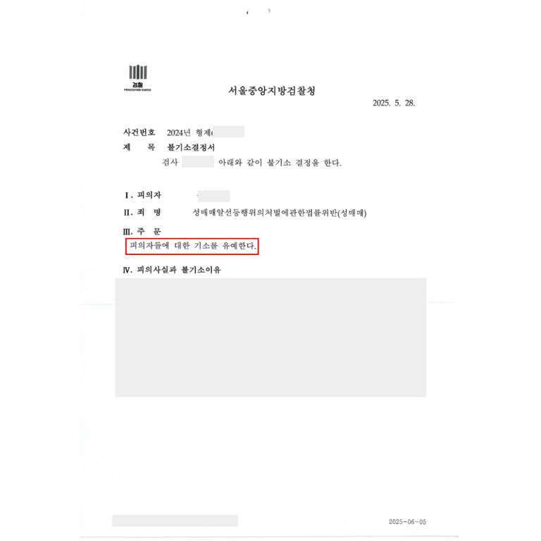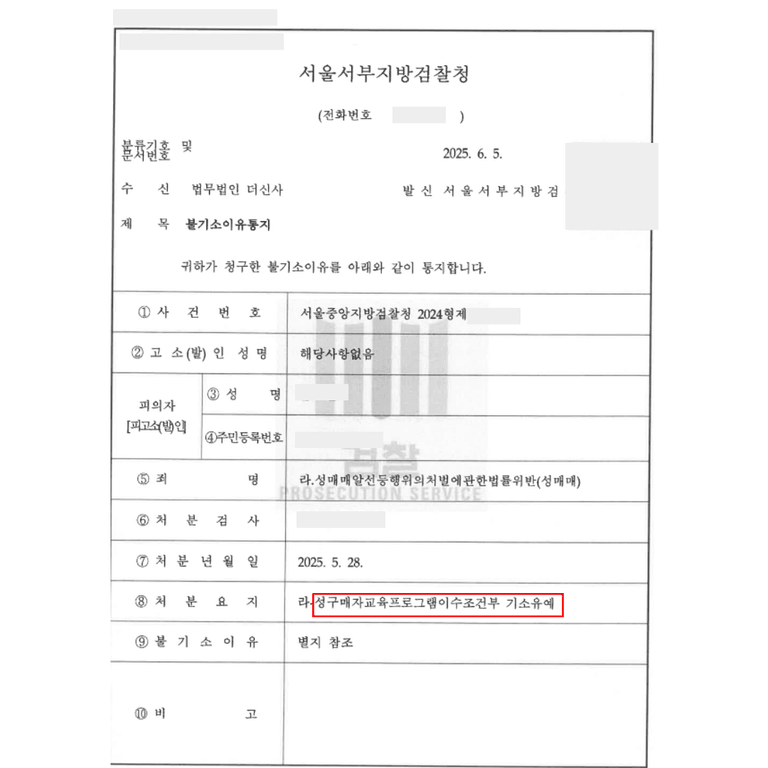 검찰은 성구매자 교육 이수를 조건으로 기소유예 처분을 결정하였습니다