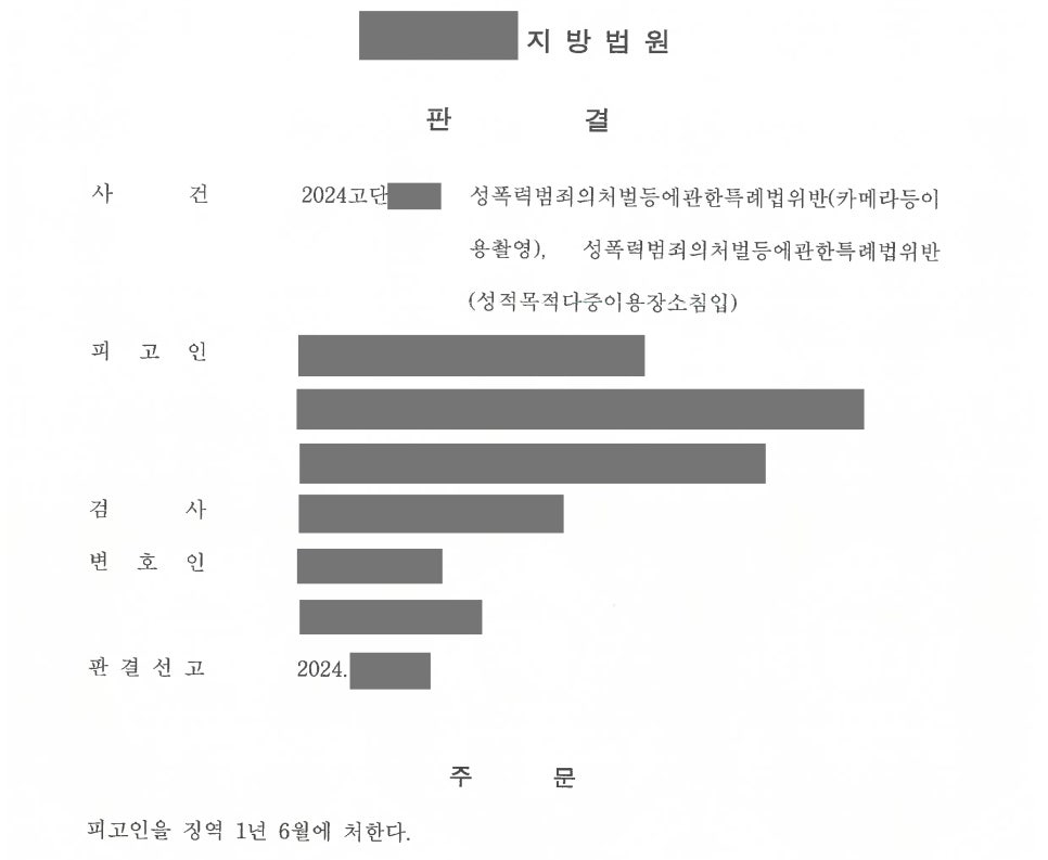 📌 공중화장실 불법촬영은 죄질이 중대해 실형 선고 가능성이 있음