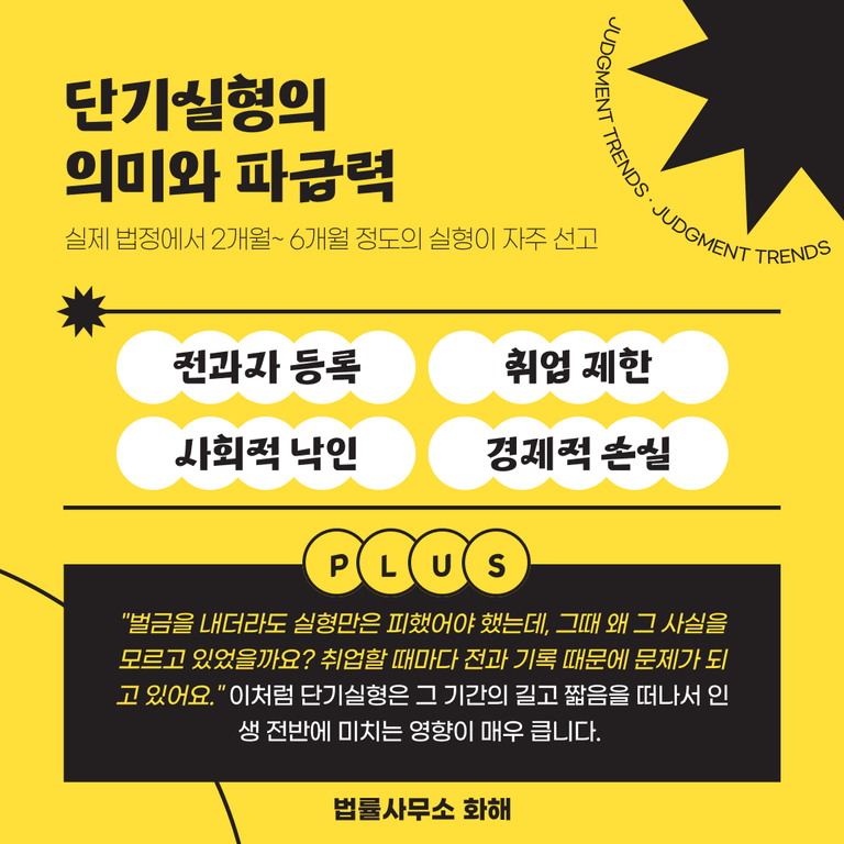 그렇다면 단기실형이란 구체적으로 무엇을 의미할까요? 일반적으로는 1년 이하의 징역형을 단기실형이라고 부르며, 실제 법정에서는 2개월~ 6개월 정도의 실형이 자주 선고되는 추세입니다. 누군가는 짧은 기간이라고 생각할 수도 있지만, 이러한 단기실형도 평범한 사람의 인생에는 엄청난 파급효과를 가져올 수 있습니다.