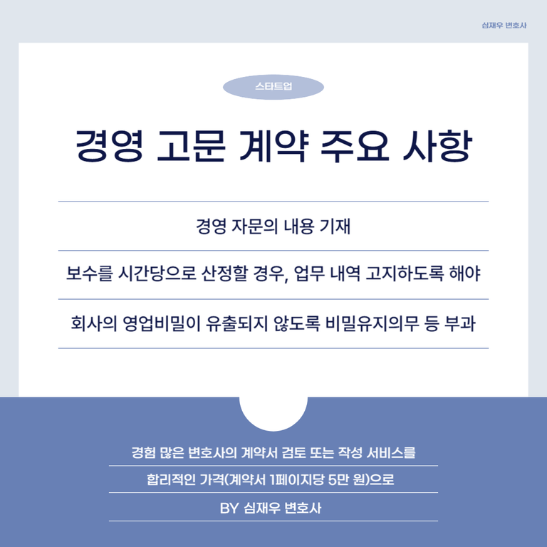 이에 필요한 경영 고문 계약서 작성을 의뢰한 사안입니다.