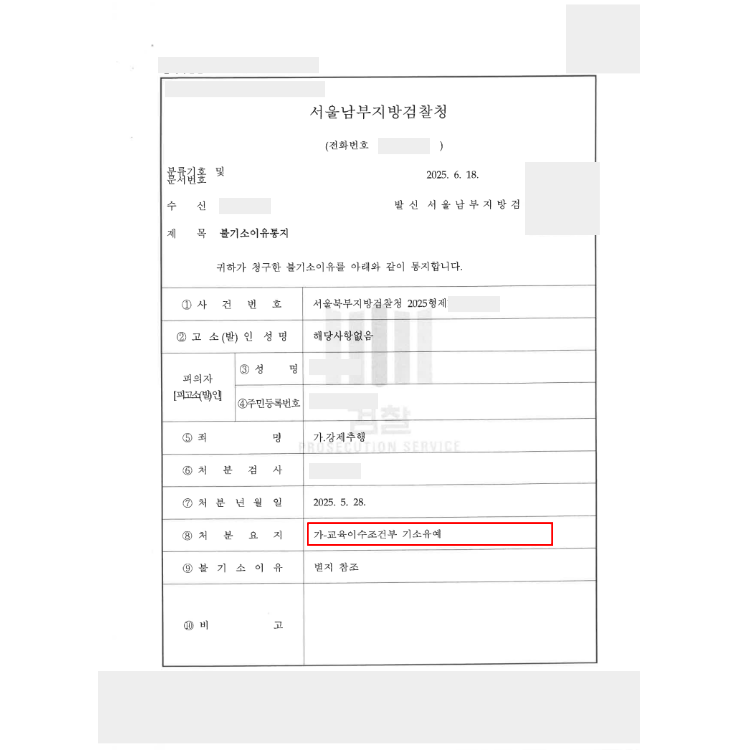 교화 목적의 조건부 불기소 처분을 내렸습니다