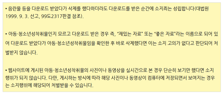 N번방 사건 등으로 아청물 관련죄는 매우 민감하므로 아청물을 소지만하여도 징역형의 형사처벌한다는 관련 규정이 마련되어있는데요.