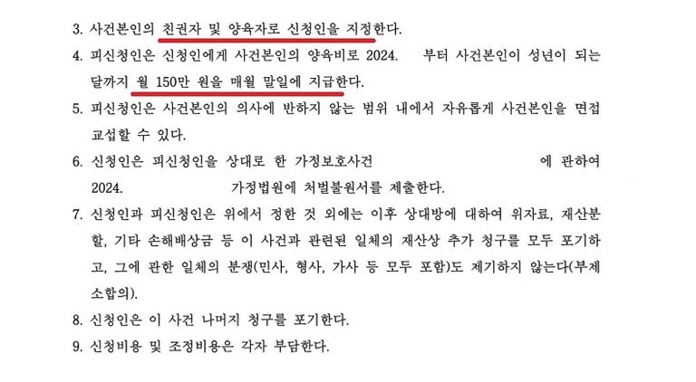 사건본인의 양육비로 월 150만 원을 지급하라고