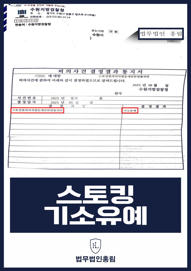 검찰은 최종적으로 의뢰인이 보인 반성 태도, 피해자와의 명확한 합의, 향후 재범 가능성의 희박함 등을 종합적으로 고려하여 스토킹 기소유예 처분을 내렸습니다. 이는 수원지방검찰청이 판단한 합리적인 재량에 따른 결과로, 홍림의 전략적 조력과 피해자 설득이 결정적인 역할을 한 사례였습니다.