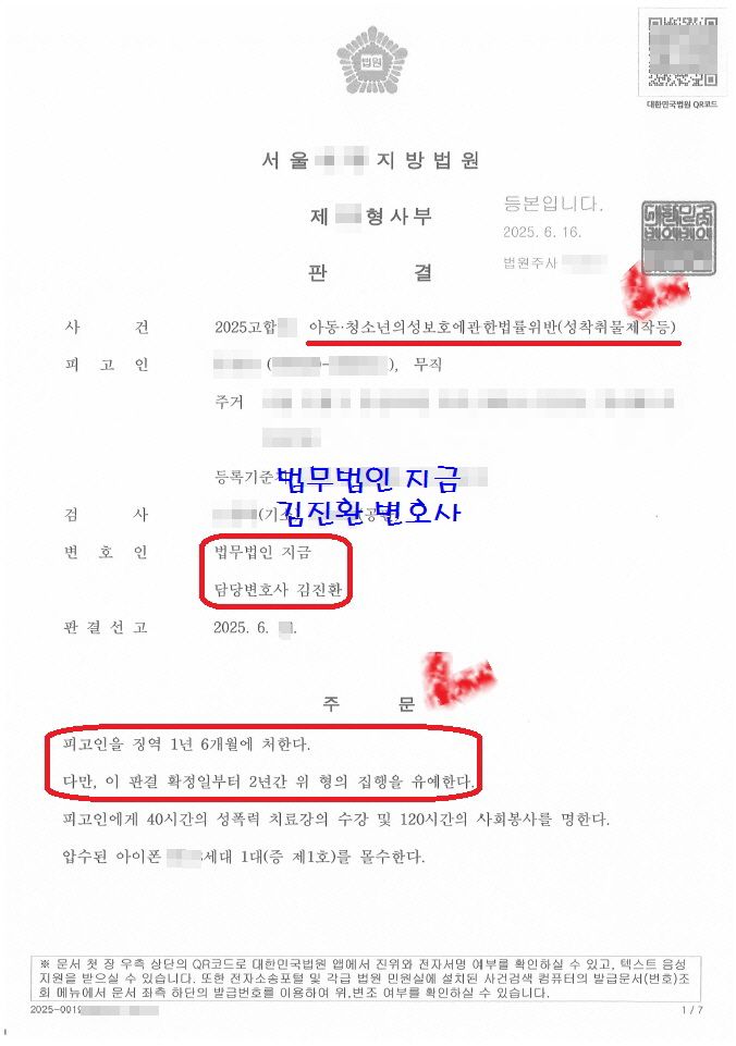 아동·청소년성착취물제작죄의 법정형이 징역 5년 이상임을 감안하면 파격적으로 낮은 형을 언도해 주신 것인데요