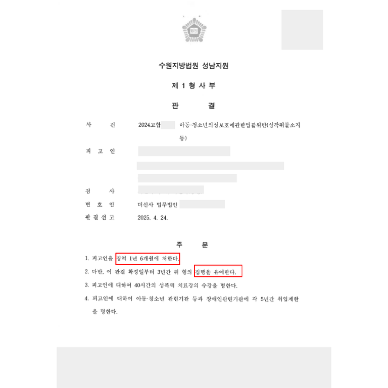사건 결과: 징역 1년 6개월, 집행유예 3년