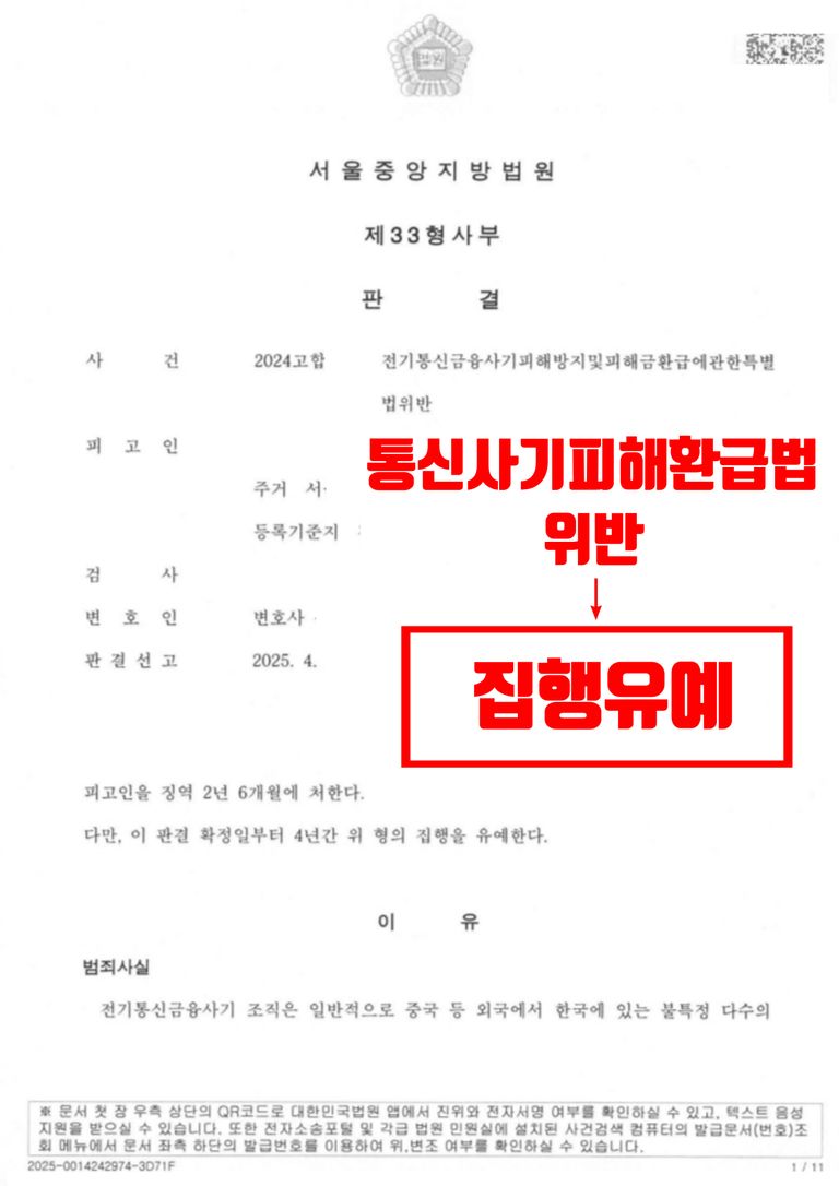 전기통신금융사기피해방지및피해금환급에관한특별법위반 제15조의2(벌칙) ① 전기통신금융사기를 행한 자는 1년 이상의 유기징역 또는 범죄수익의 3배 이상 5배 이하에 상당하는 벌금에 처하거나 이를 병과(倂科)할 수 있다.