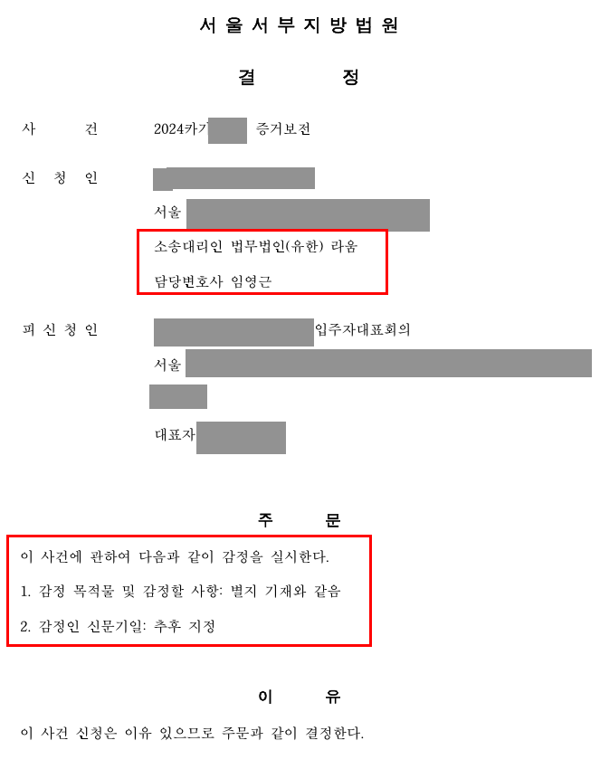 아래가 제가 진행하여 법원으로 받았던 증거보전 결정입니다