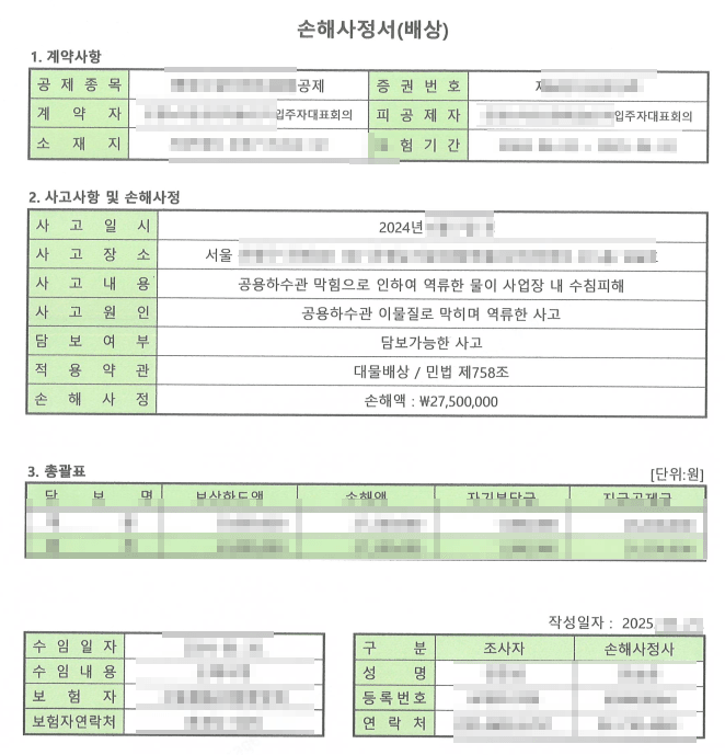 감정 현장조사 이후 감정인이 요구하는 자료를 충실히 제출하고 기다린 결과, 상대방이 제안한 금액과는 비교할 수 없는 상당한 복구 공사비용과 집기 손해비용을 인정받을 수 있었습니다.