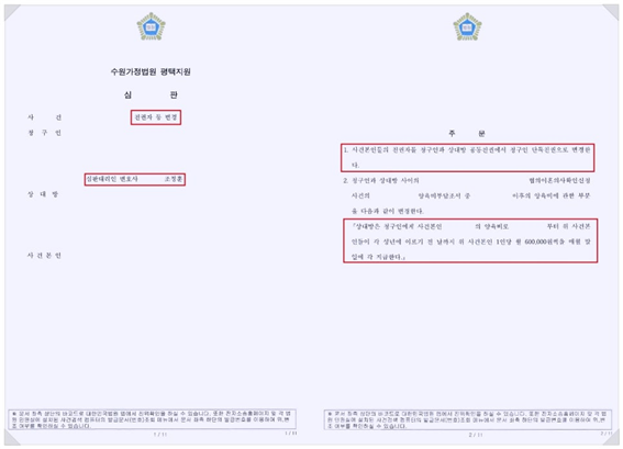2. 상대방은 청구인에게 사건본인들이 각 성년에 이르기 전 날까지 위 사건본인 1인당 월 600,000원씩을 매월 말일에 각 지급한다'라는 판결을 내렸습니다.
