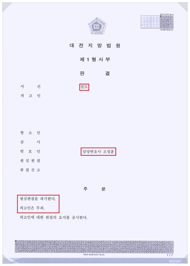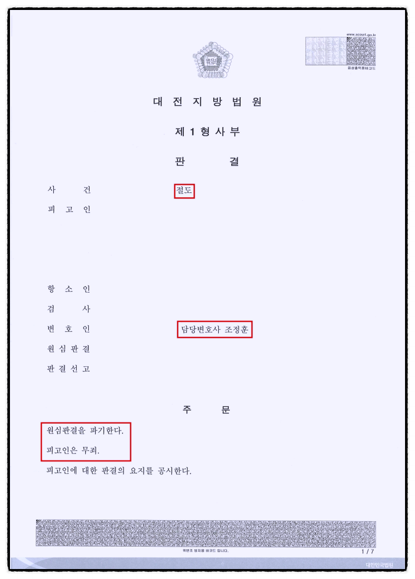 1심에서 유죄가 인정된 사건이 2심에서 무죄로 변경되는 비율은 매우 낮은데, 본 사안에서는 조정훈 변호사의 조력을 통해 의뢰인이 무죄를 선고받아 억울한 범죄자가 되지 않을 수 있었습니다.