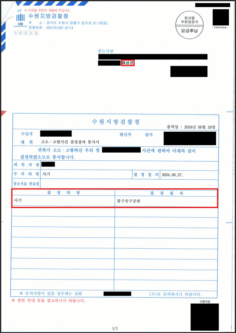 사법경찰관은 중고차 판매상의 사기혐의를 전부 인정하여 검찰로 송치하였고, 검찰도 마찬가지로 중고차 판매상의 혐의를 인정하여 구공판처분을 하게 되었습니다.